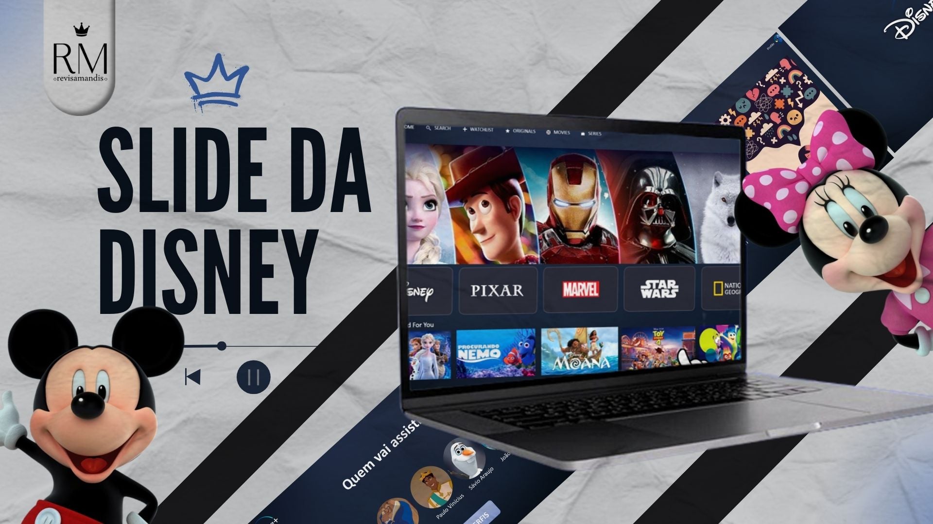 Template desenvolvido no PowerPoint inspirado na Disney plus