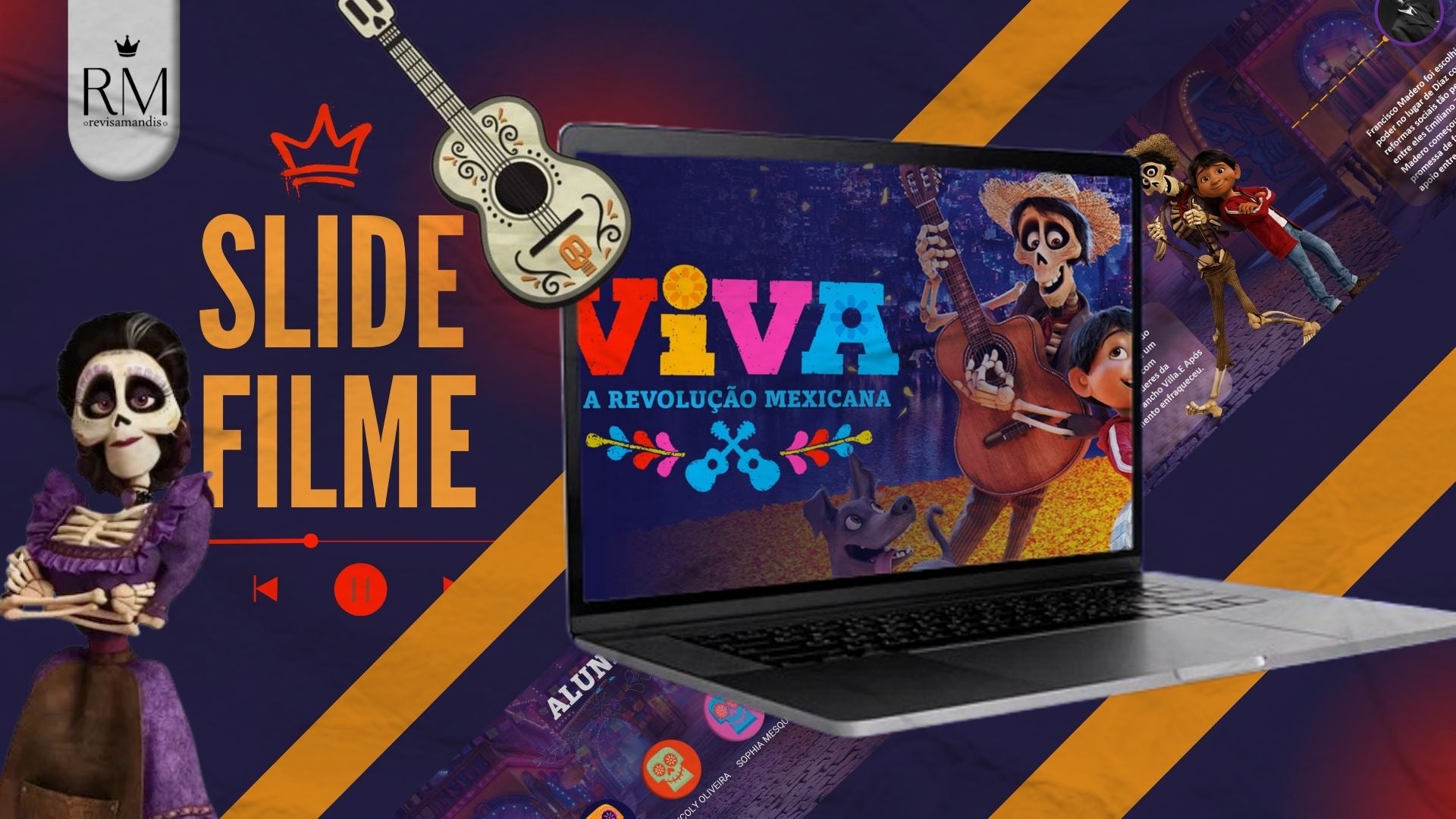 Template desenvolvido no PowerPoint inspirado no filme viva a vida é uma festa