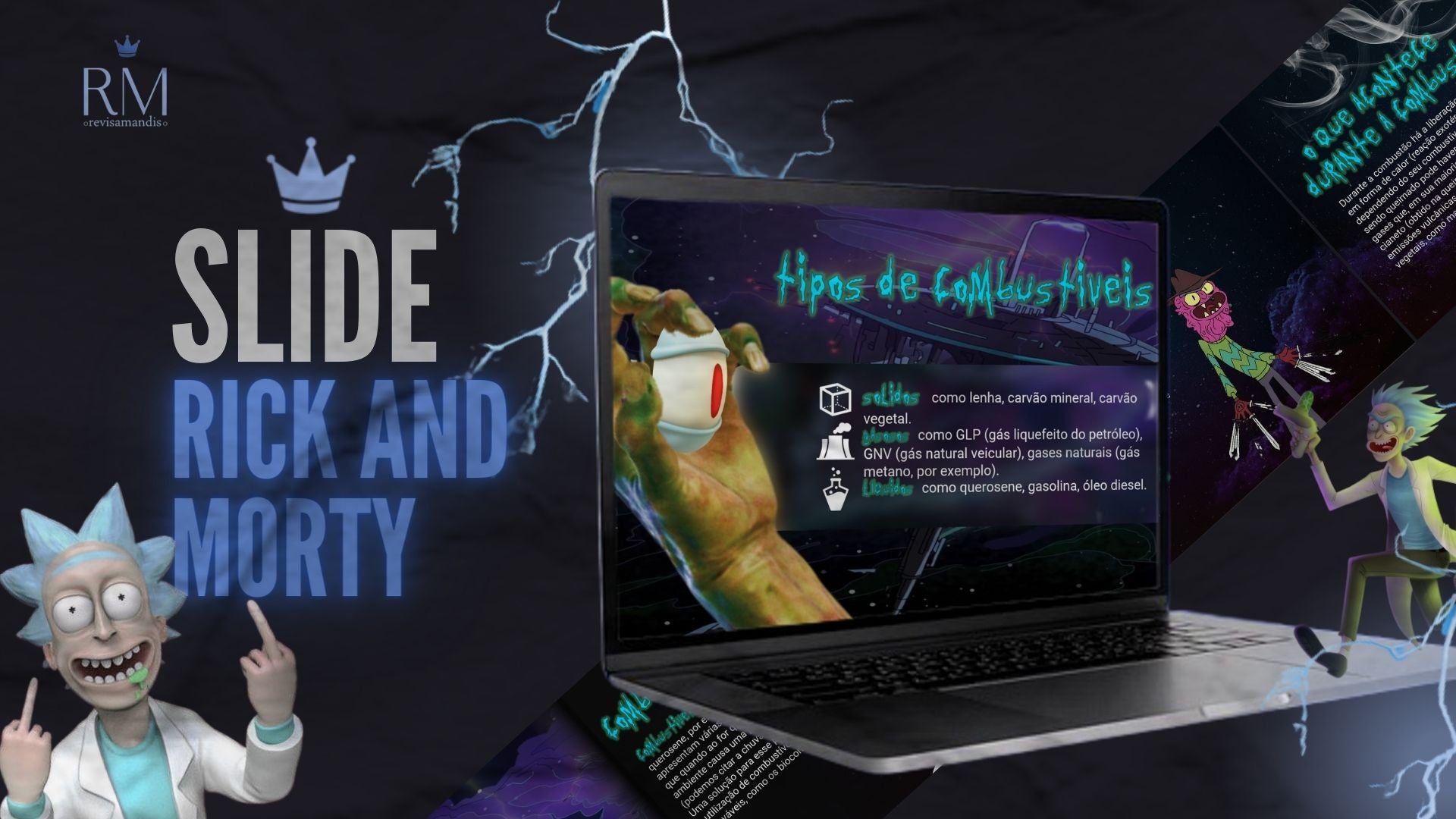 Template desenvolvido no PowerPoint inspirado no desenho Rick e Morty