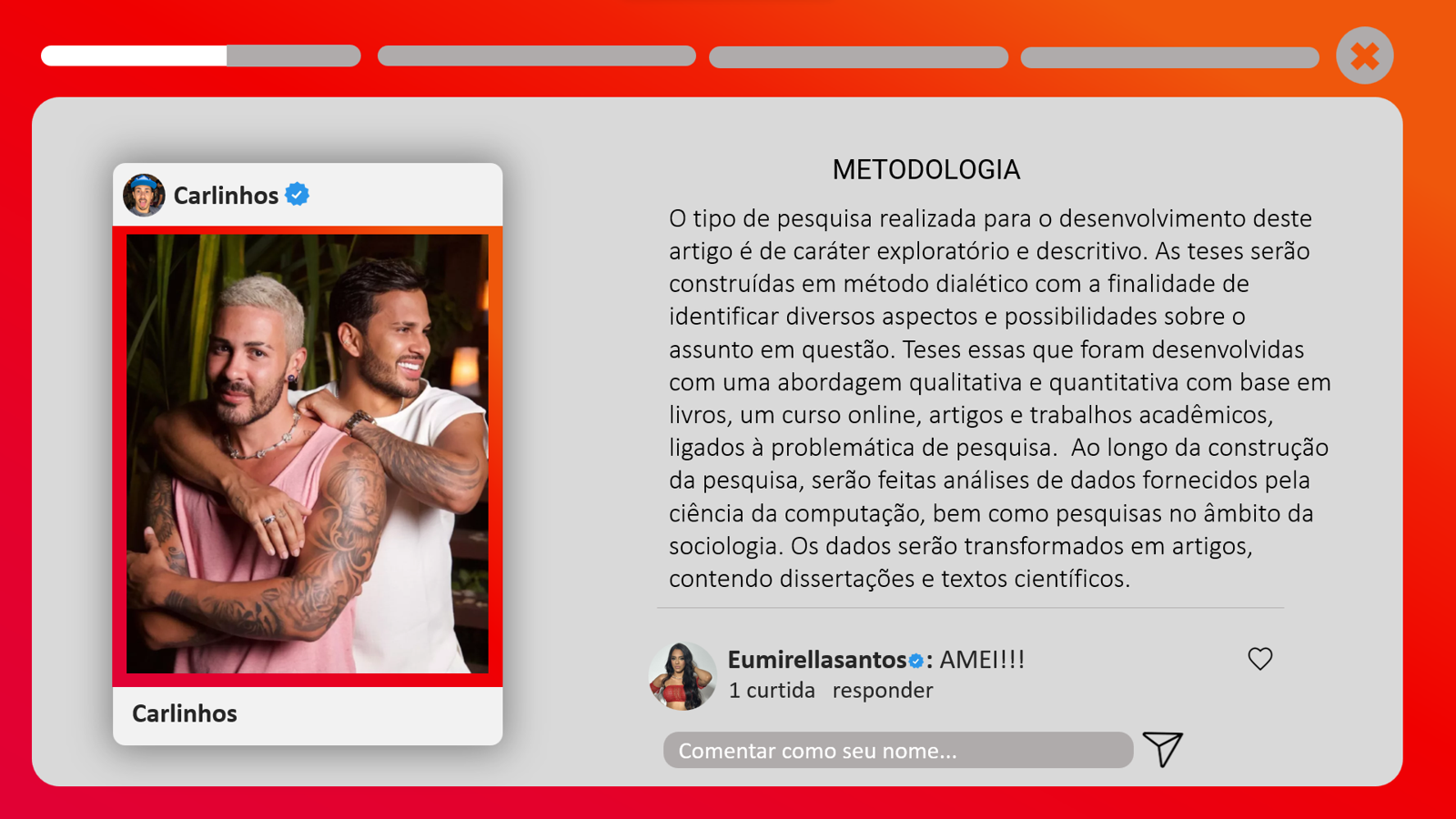 Template desenvolvido no PowerPoint inspirado no layout do instagram